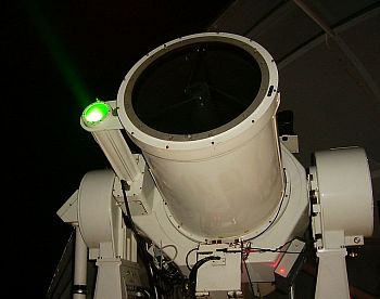 Vzdálenosti umělých družic Země se tu měří pomocí pulsního laserového dálkoměru, což je v podstatě radar, který jen místo rádiových vln vysílá zelené světlo. Prostě vyšleme ke družici kratičký impuls světla z laseru a stopujeme dobu, za jakou se nám vrátí zpět pár odražených fotonů. Na stejném principu funguje i známé laserové měření vzdálenosti Měsíce, na to ovšem potřebujete hodně silný laser a velký dalekohled. Zdejší přijímací dalekohled je půlmetrový Cassegrain, hlavní zbraní stanice je ovšem high-tech laser, který za sekundu dovede vyslat 2000 ultrakrátkých pulsů, dlouhých pouze osm pikosekund. Pro představu, za osm pikosekund uletí světlo něco přes dva milimetry(!). Z vysílacího dalekohledu tedy vylétávají vlastně "destičky" světla široké 10 cm (průměr dalekohledu) a tlusté jen 2,4 mm. Laser má průměrný výkon asi 1 Watt, takže když do paprsku strčíte ruku, nic se vám nestane. Ale dost už čísel. Za zmínku by sice stál i rychlý detektor odražených fotonů, který byl vyvinut u nás na ČVUT, unikátní časovací elektronika nebo přesná montáž dalekohledu, ale na to zde není místo.