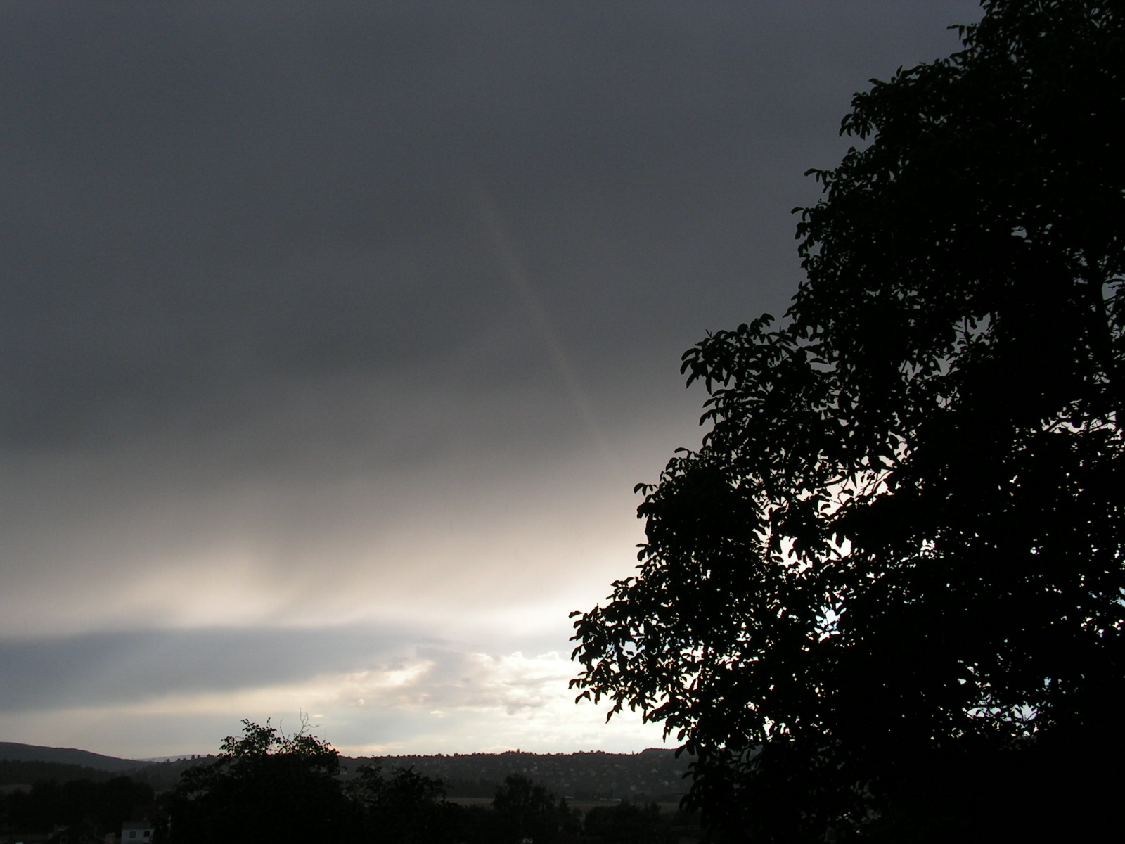 Zpočátku, ještě než mě napadlo, že by se mohlo jednat o Tyndallův jev, jsem si myslel, že se jedná o nějaký zvláštní druh krepuskulárních paprsků, avšak tato hypotéza mne brzy opustila, protože odporovala samotné podstatě krepuskulárních paprsků, která je skryta ve hře stínů výrazných terénních překážek anebo oblaků. Tyto stíny se promítají na základny oblaků podobně jako film na plátno anebo do srážkových pruhů, kde tak vznikají zajímavé scenérie. Dlužno však připomenout, že i v tomto případě se uplatňuje vliv perspektivy a krepuskulární paprsky se vždy více či méně rozbíhají směrem od Slunce. Shrnuto a podtrženo, krepuskulární paprsky jsem pozorovat nemohl.