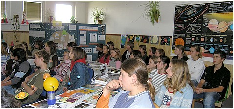 Hned po krátkém úvodu se v mediální učebně začal rozléhat signál Sputniku. O něco později jsme měli možnost vidět, jak Praha 28. dubna 1961 radostně přivítala prvního kosmonauta světa J. A. Gagarina, dále úspěšné přistání lidí na Měsíci, Lunochod na Měsíci, start našeho prvního kosmonauta V. Remka. Mnozí z nás poprvé viděli záložního kosmonauta O. Pelčáka. Připomněli jsme si i jména kosmonautů, kteří při dobývání vesmíru přinesli oběť nejvyšší. Pro mnohé z nás bylo překvapením, že 19. června 1989 v Praze přistál Sovětský raketoplán. Následovala část věnovaná spolupráci ve vesmíru. Dozvěděli jsme se řadu podrobností o dlouholetém úspěšném kosmickém programu České republiky. V závěrečné části prezentace jsme slyšeli i podrobnosti o prvních turistech ve vesmíru.