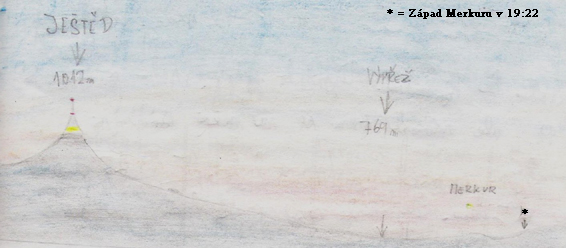 Situace nad obzorem 19:00 SEČ - Pouhým okem Venuše 14.5.2004