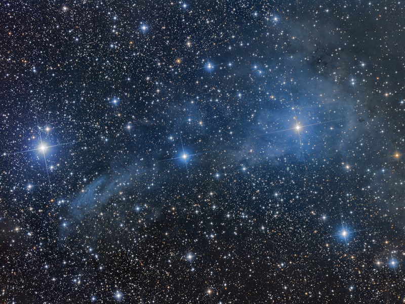 Very faint reflection nebula in constellation Camelopardalis. The nebula is so faint that at single shot exposure is not visible and total integration time 700 minutes and advanced post-processing were needed to produce such image.